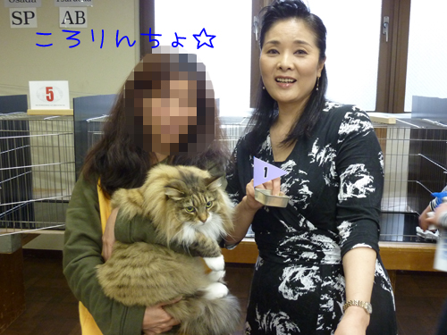 ジャッジさんが2位の札をもう1頭の猫さんのケージに置いた瞬間