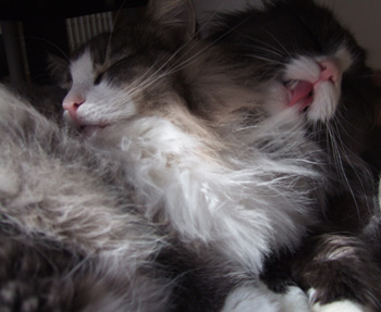 ベッドに割り込んでおいて なんでぶーたれ顔なの~??(>▽<;;