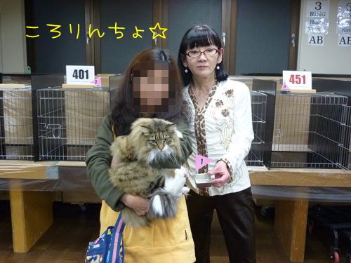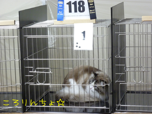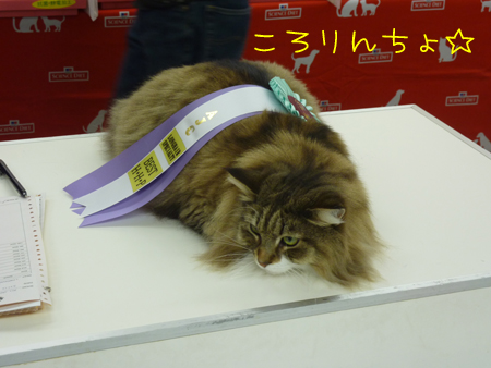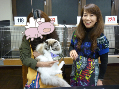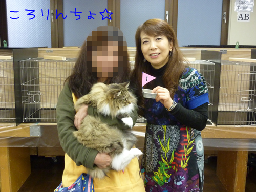 ジャッジさんが2位の札をもう1頭の猫さんのケージに置いた瞬間